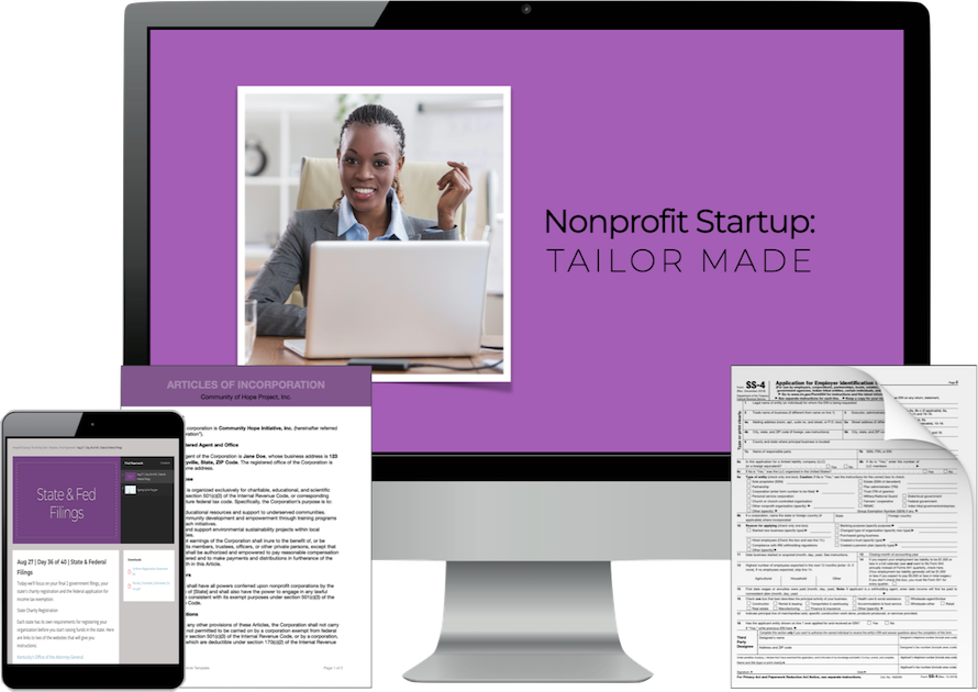 TailorMade is a private one-on-one support project that combines education, coaching and done-for-you nonprofit startup filings.